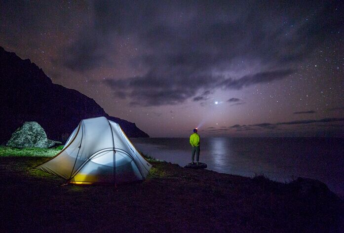 在戶外扎營(yíng)點(diǎn)燈前有一點(diǎn)要特別注意,那就是將帳篷的外賬及內(nèi)賬的門布全部拉好,不能有一點(diǎn)縫隙,因?yàn)橥砩显趹敉饬翢舯厝粫?huì)引來大量的蚊蟲和部分冷血?jiǎng)游铮绻鼈兠胺高M(jìn)入了我們舒適的“小窩”那可就要掃了大家的興了。